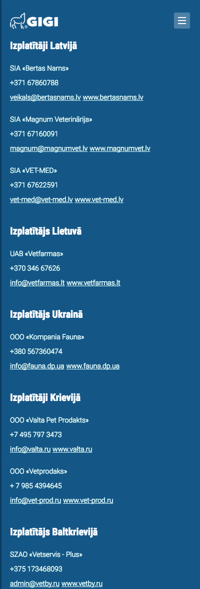Project«GIGI» — a responsive website for the Latvian company which sells vitamins and different useful medicines for cats and dogs.