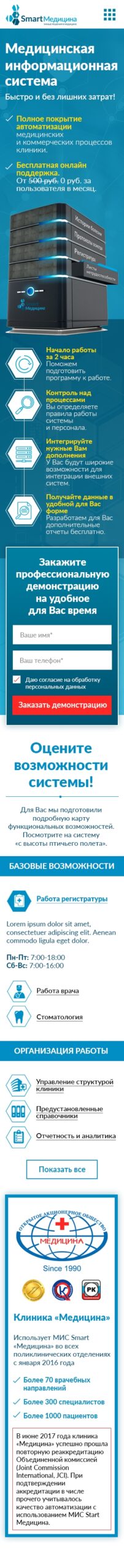 | Client | www.smartmedicina.ru — Specialists from one of Russia’s top clinics — JSC “Medicina” — participated in the development of Smart Medicine products. The design of the medical and business processes supported by the product involved truly top-level professionals, including department heads, doctors, administrators, financial experts, and many others. |
